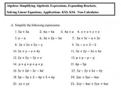 10 Of The Best Algebra Worksheets For Ks3 July 29, 2019 in July 29th, 201910 Of The Best Algebra Worksheets For Ks3Image Info File Name : 1_simplifying_equations_1.jpg Dimensions : 500x366 Ratio : 15:11 File Size : File Type : image/jpegSponsored links