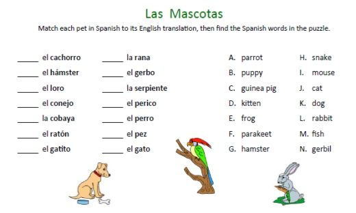 6th Grade Spanish Worksheets