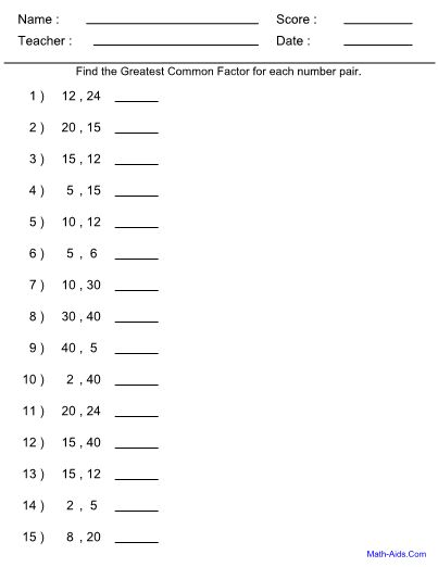 Common Factor Worksheets