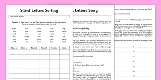 Silent K Words Worksheets