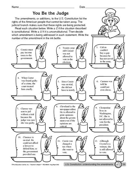The Constitution Worksheets