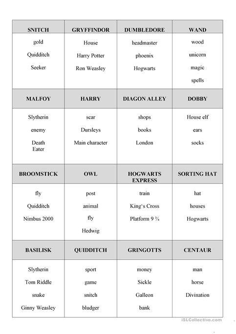 Harry Potter Esl Worksheets