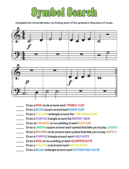 Music Symbols Worksheets