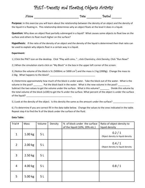 Density Worksheets For Middle School