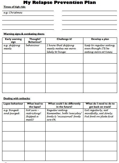 Relapse Warning Signs Worksheets