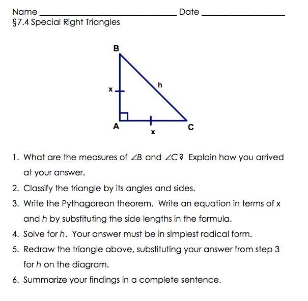 Special Right Triangles 45-45-90 Worksheets
