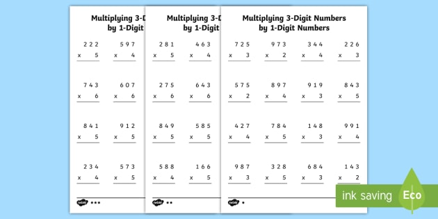 Multiplying By One Digit Numbers Worksheets