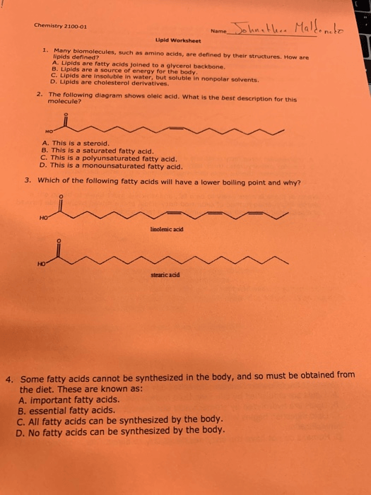 Lipid Worksheets Answers