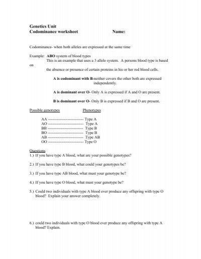 Codominance Blood Type Worksheets