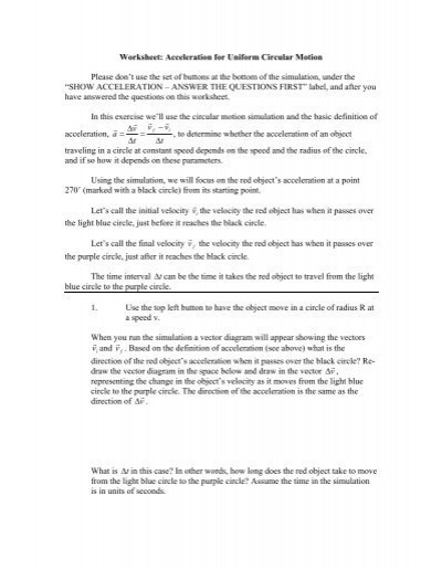 Circular Motion Worksheets Answers