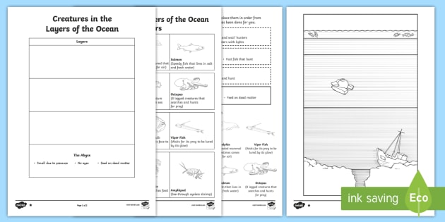 Layers Of The Ocean Worksheets