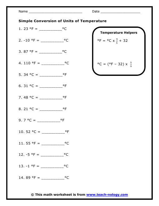 Temperature Conversion Worksheets