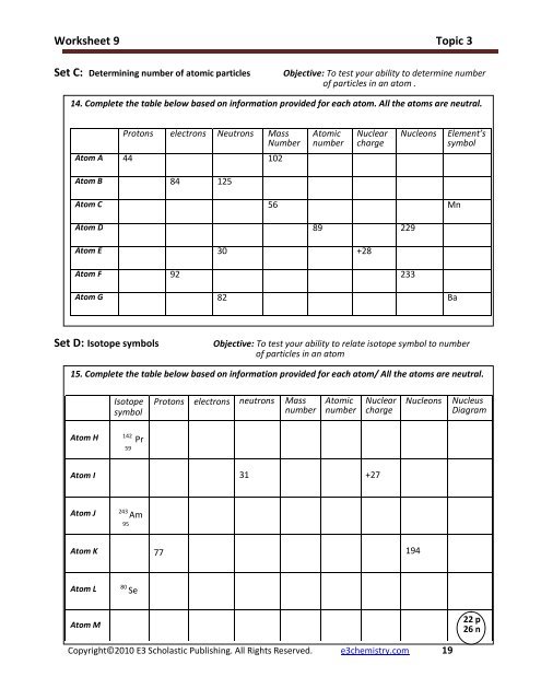 Atomic Structure Ch. 3 Worksheets Answers