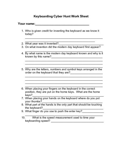 Elementary Computer Worksheets