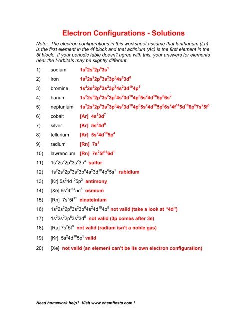Electron Configurations Practice Worksheets Answers