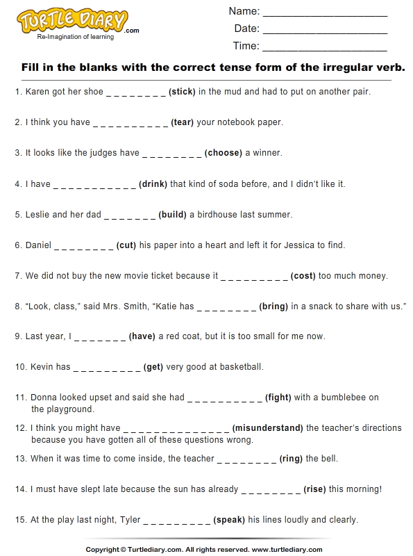 English Fill In The Blanks Worksheets