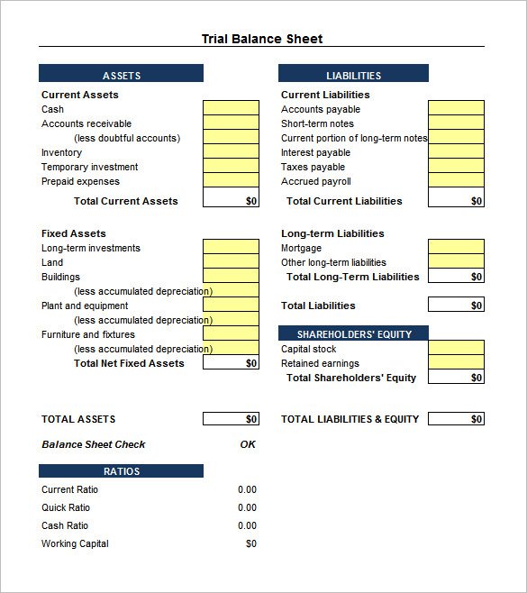 Trial Balance Worksheets Template