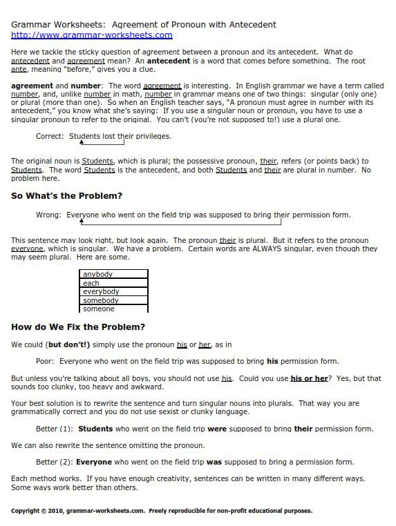 Antecedent Pronoun Worksheets